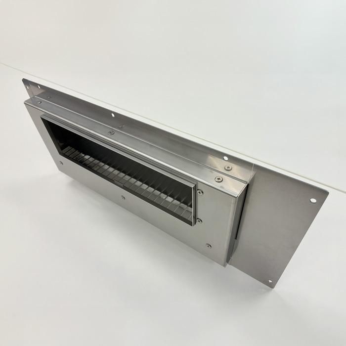 主要部材 | ファンユニット枠:ステンレス ユニットファン:AES樹脂 フロントカバー:アクリル樹脂 フードユニット:ステンレス 外カバー:ステンレス |